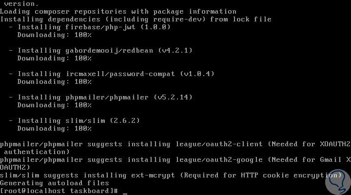 El siguiente paso consiste en instalar las dependencias requeridas de PHP a través de Composer ejecutando el siguiente comando:
