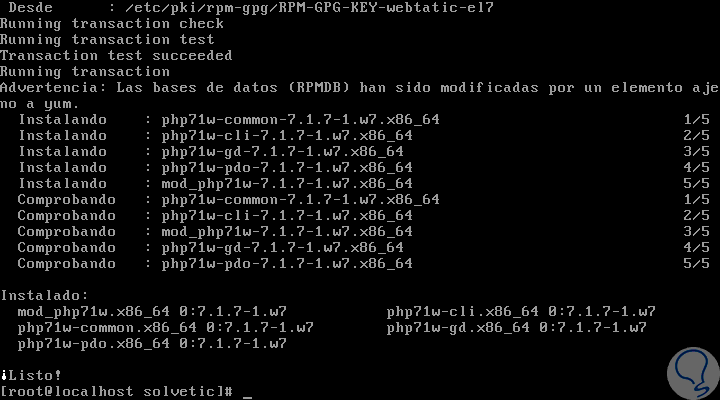 A continuación instalaremos el repositorio Webtatic ejecutando la siguiente línea:
