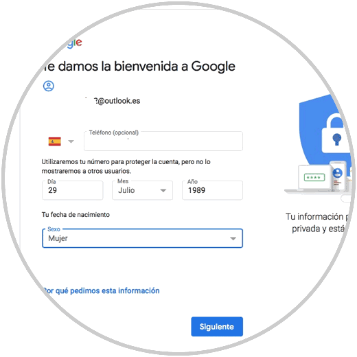 Ahora debemos registrar otra serie de datos que nos piden y pulsar en "Siguiente"