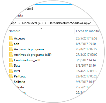 Para montar un punto de restauración, lo seleccionaremos de la lista y haremos clic en el botón Mount y esto montará el punto de restauración y podremos abrirlo en el Explorador de archivos para ver su contenido: