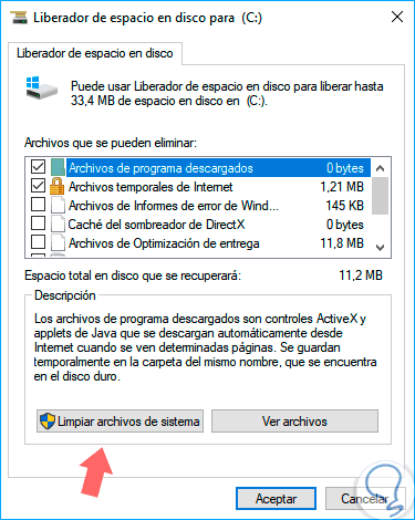 Allí pulsamos en el botón “Limpiar archivos de sistema” e iniciará el proceso de análisis: