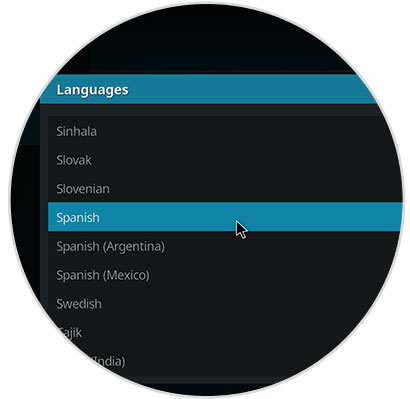 Pulsamos en él y se instalara en unos segundos. Ahora podemos ver el nuevo idioma establecido en Kodi:
