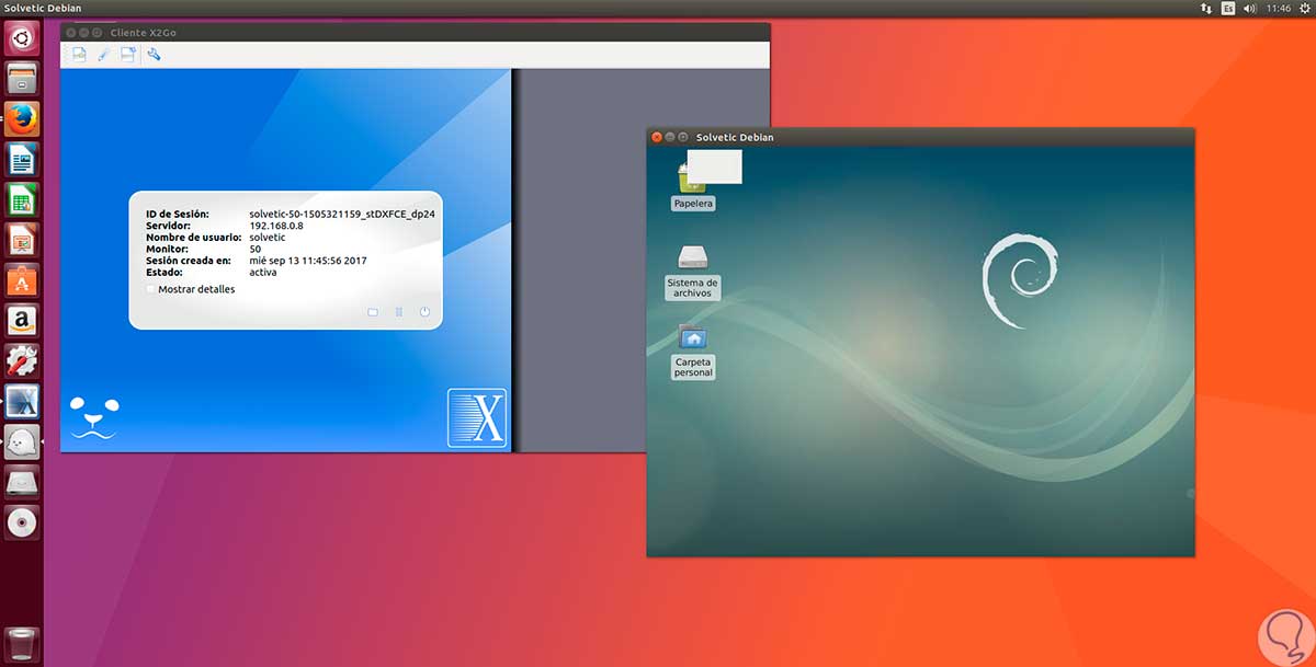 Con el cliente X2Go instalado procedemos a conectarnos de forma remota así: