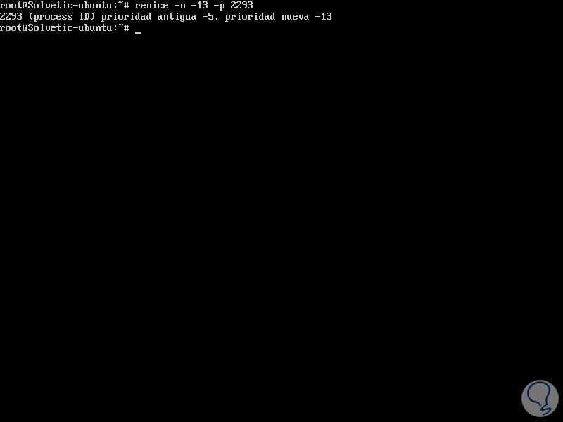 renice -n -12 -p (PID) renice -n -2 -u (Aplicación)Al ejecutar este comando podremos ver la prioridad antigua y la nueva prioridad.
