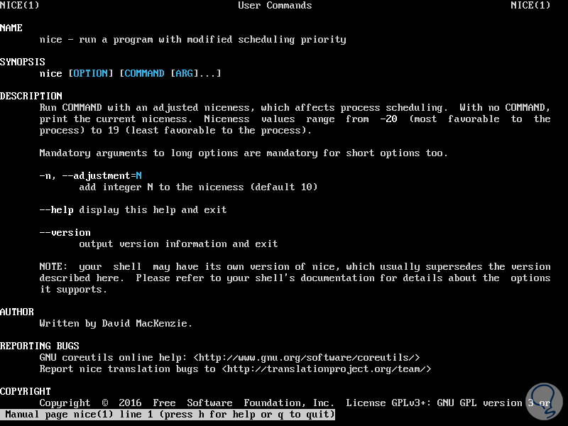 Si deseamos obtener la ayuda de nice o renice podemos ejecutar lo siguiente: