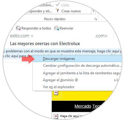 Para ello abrimos el correo y damos clic derecho sobre la advertencia de seguridad y seleccionamos la opción "Descargar imágenes".