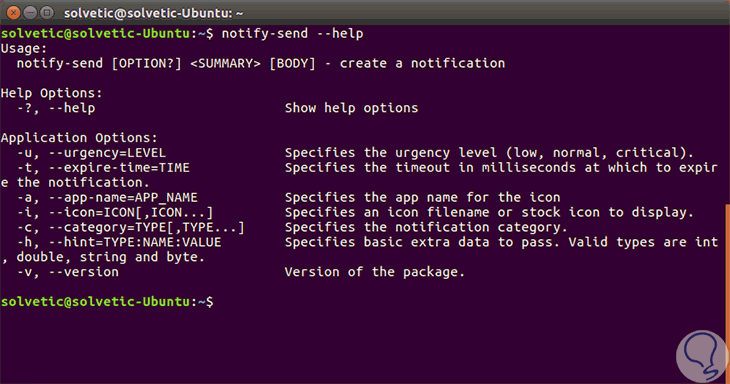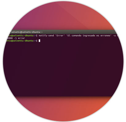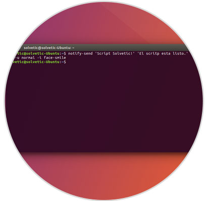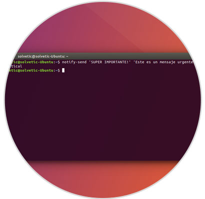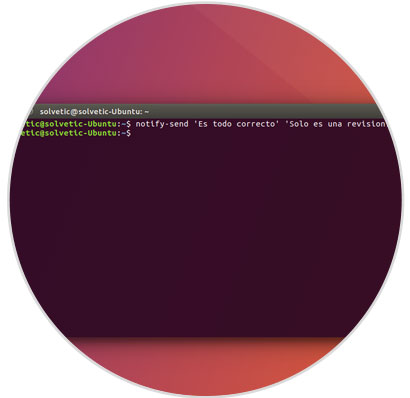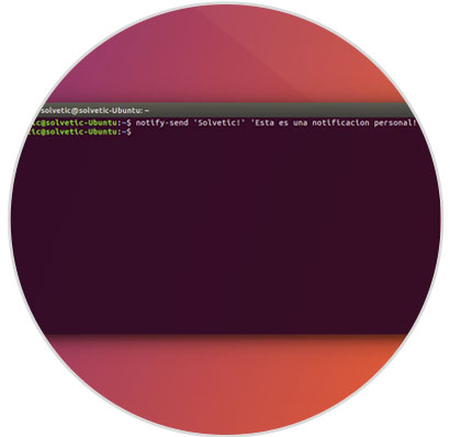 notify-send 'Solvetic!' 'Esta es una notificación personal!Al pulsar "Enter" podremos ver que se despliega la notificación de forma emergente en el escritorio de Ubuntu: