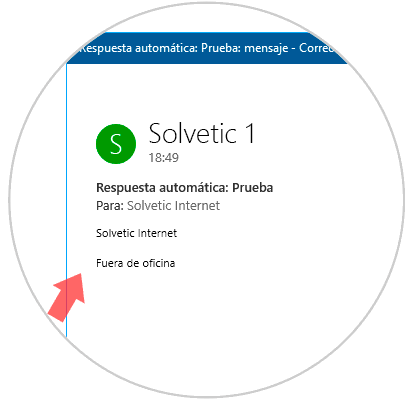A partir de este momento, cuando recibamos un mensaje a este correo, el remitente recibirá de manera automática el mensaje que hayamos configurado de manera previa.