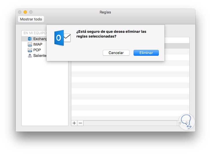 Una vez pulsado el signo – para eliminar la regla debemos confirmar la eliminación.