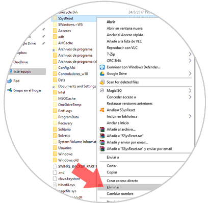 2. Cómo borrar carpeta $SysReset en Windows 10