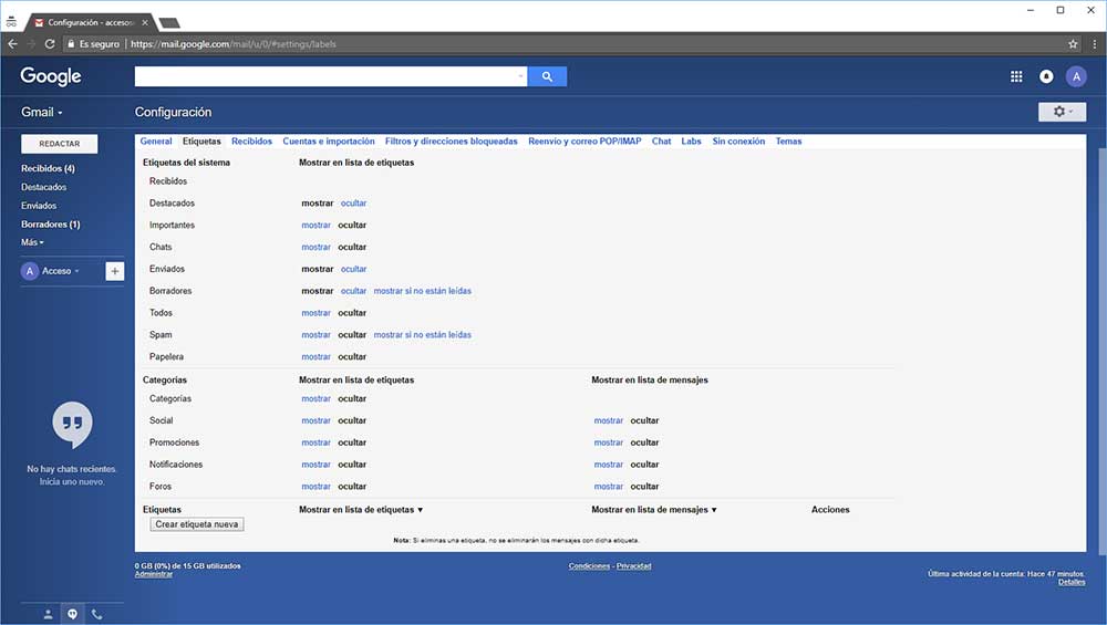Como vemos Gmail nos ofrece múltiples opciones para la personalización de la plataforma y de esta forma establecer allí nuestros gustos.