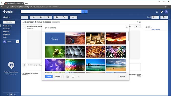 Podemos ver que automáticamente la foto se establece como fondo de Gmail y queda disponible en los temas de Gmail:
