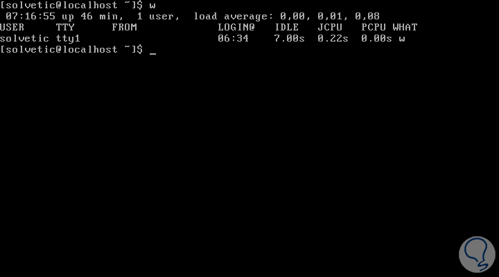9. Obtener información del usuario usando el comando w Linux