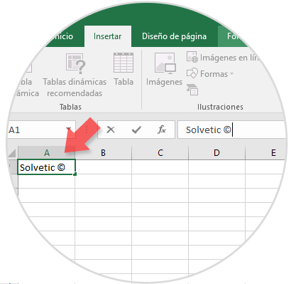 2. Cómo insertar el caracter de derecho de autor o Copyright en Excel 2016