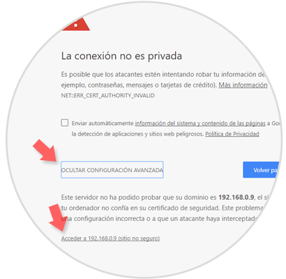 Allí pulsamos en el botón Configuración avanzada y seleccionamos la línea Acceder a Direccion_IP y accederemos a la siguiente ventana donde ingresaremos el respectivo usuario y contraseña de acceso: