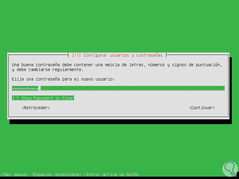 Pulsamos Enter para confirmar y asignaremos una contraseña segura al mismo: