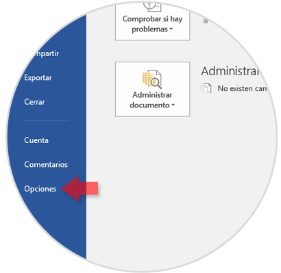 Para agregar un video offline o sin conexión en Word 2010 o 2013, el primer paso consiste en habilitar la ficha Programador y para esto vamos al menú Archivo y allí seleccionamos Opciones: