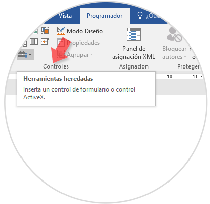 Una vez allí daremos clic sobre el icono Herramientas heredadas ubicado en el grupo Controles: