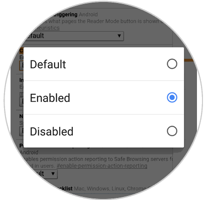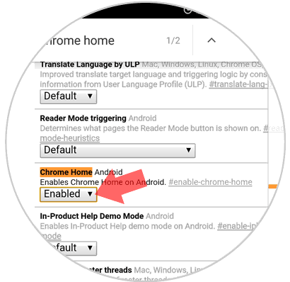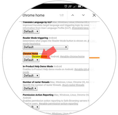 Chrome HomePodemos ver que se resalta la opción respectiva y que su valor predeterminado es "Default":