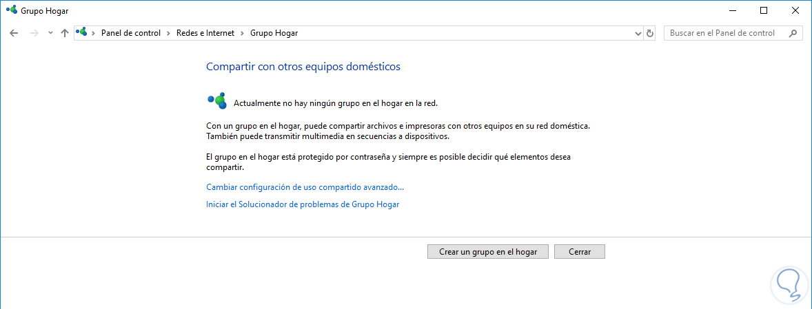 Panel de control \ Redes e Internet \ Grupo Hogar