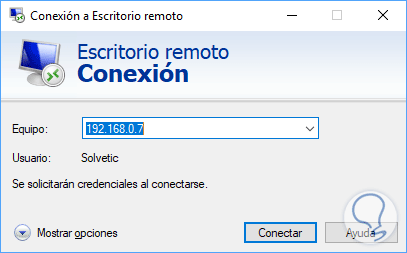 Finalmente basta con conocer la dirección IP del equipo remoto para establecer la respectiva conectividad: