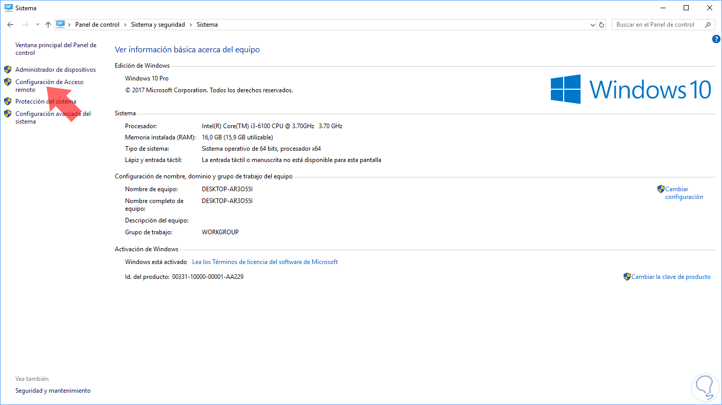 Allí pulsamos en la opción Configuración avanzada del sistema ubicada en el costado izquierdo y en la ventana desplegada iremos a la pestaña Acceso remoto y veremos lo siguiente:
