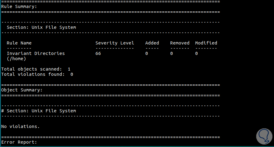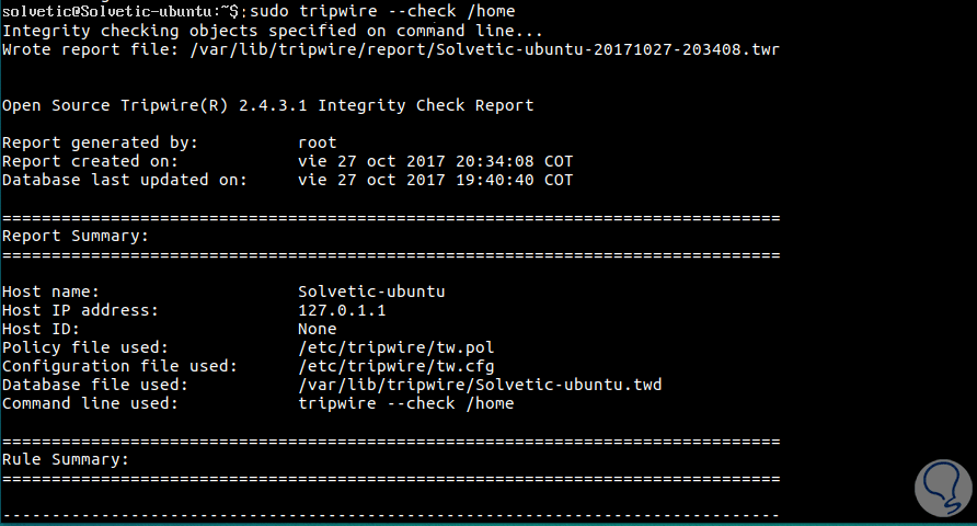 Con Tripwire será posible escanear solo un directorio, por ejemplo, para escanear el directorio /home ejecutaremos lo siguiente: