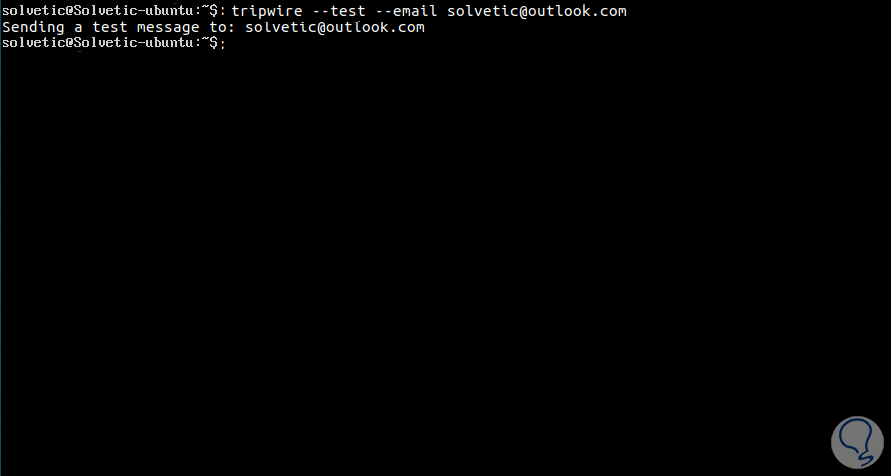Antes de configurar las notificaciones por correo electrónico, podemos probar la notificación de Tripwire usando el siguiente comando: