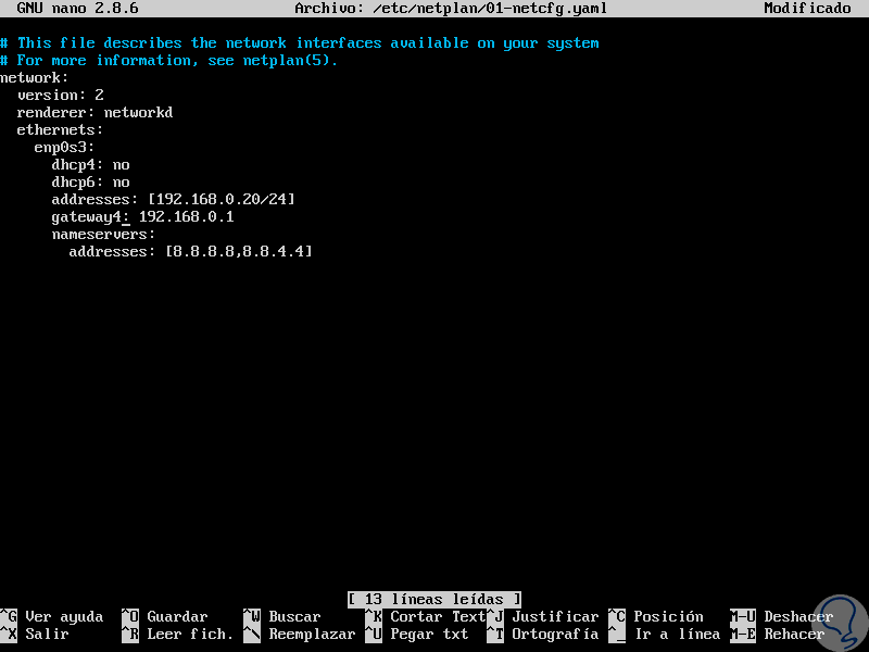 2. Establecer una dirección IP estática en Ubuntu 17.10 Server