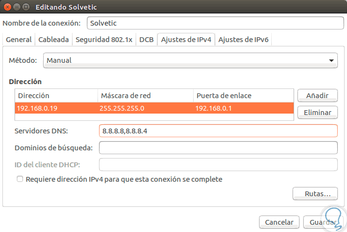 4. Establecer una dirección IP estática en Ubuntu 16.10
