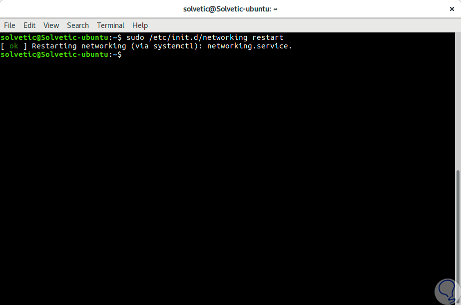 Finalmente, reiniciamos los servicios de red ejecutando la siguiente línea. De este modo podemos establecer la dirección IP estática en Ubuntu 16.04 y 16.10.