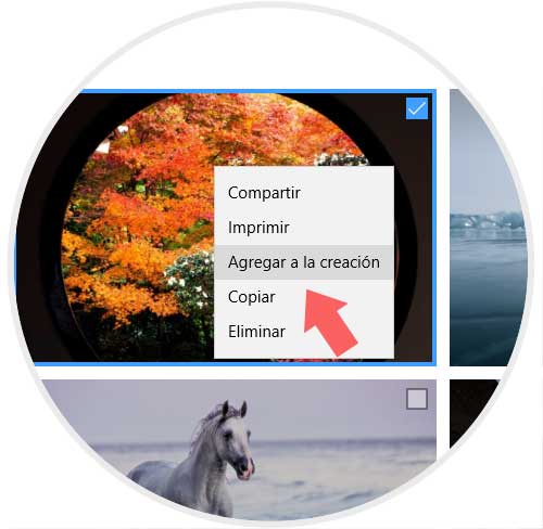 Una vez contemos con la aplicación, procedemos a abrir Fotos y pulsamos en el menú Crear donde veremos las siguientes opciones: