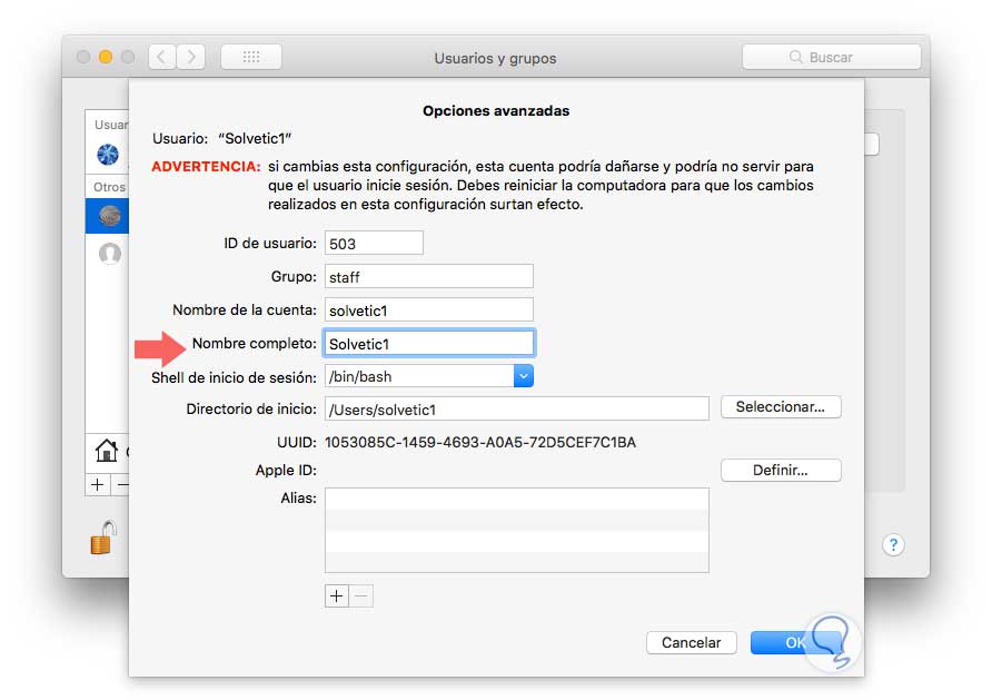 Existen muchas razones para ello, quizás es un cambio de nombre, o corregir algún error en el nombre completo de la cuenta, y deseamos que el nombre completo de la cuenta de usuario en macOS refleje este cambio.