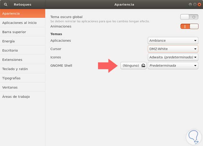 4. Cómo cambiar el tema en Ubuntu 17.10
