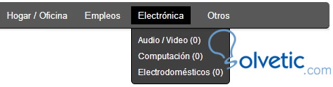 CREATE TABLE IF NOT EXISTS `menu` ( `id` int(11) NOT NULL AUTO_INCREMENT, `menu` varchar(20) COLLATE utf8_spanish_ci NOT NULL, [/font][/size] [size=4][font=arial,helvetica,sans-serif]PRIMARY KEY (`id`) ) ENGINE=InnoDB DEFAULT CHARSET=utf8 COLLATE=utf8_spanish_ci; INSERT INTO `menu` (`id`, `menu`) VALUES (1, 'Hogar / Oficina'), (2, 'Empleos'), (3, 'Electronica'), (4, 'Indumentaria'), (5, 'Otros');