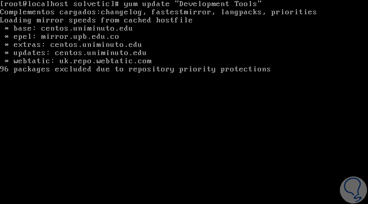 yum epate "Development Tools"En este caso hemos seleccionado esta opción para actualizar de una sola vez las herramientas de desarrollo (compilador C y C ++ más utilidades relacionadas).