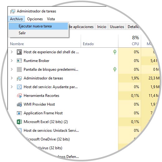 10. Abrir y ver Información del Sistema con Administrador de tareas Windows 10, 8, 7