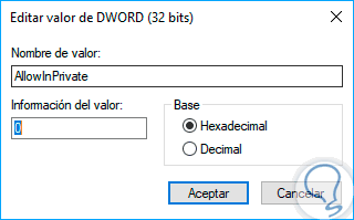 Este nuevo valor DWORD será llamado “AllowInPrivate”: