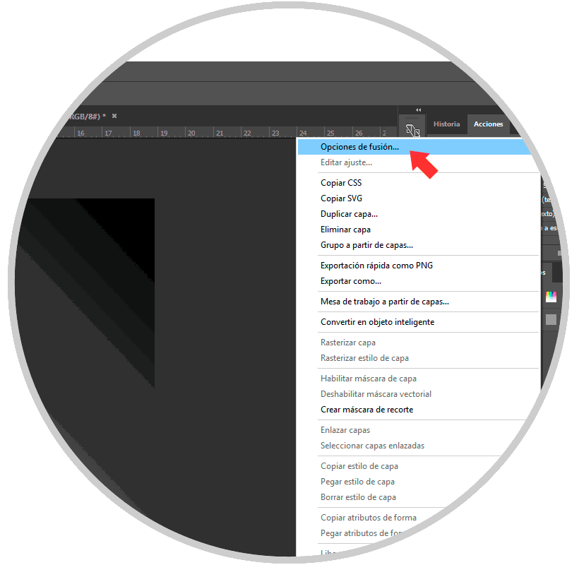 Sobre la nueva capa pulsamos botón derecho y “Opciones de fusión”.