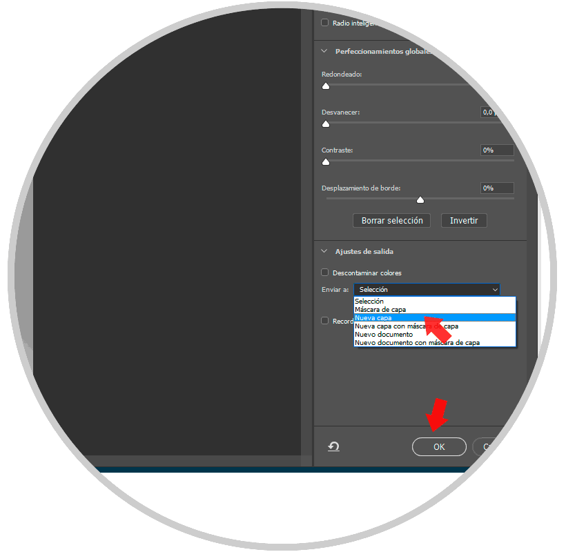 Una vez hemos ajustado los parámetros para que el recorte de la imagen no sea demasiado dura, seleccionaremos en la opción que nuestra imagen se envíe a una capa nueva. Después pulsamos en Ok para aplciar cambios.
