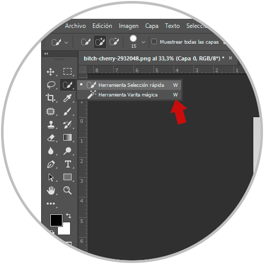 Una vez tenemos nuestra imagen abierta elegiremos algún método de selección para determinar nuestra imagen. En este caso hemos elegido “ Herramienta Selección rápida”.