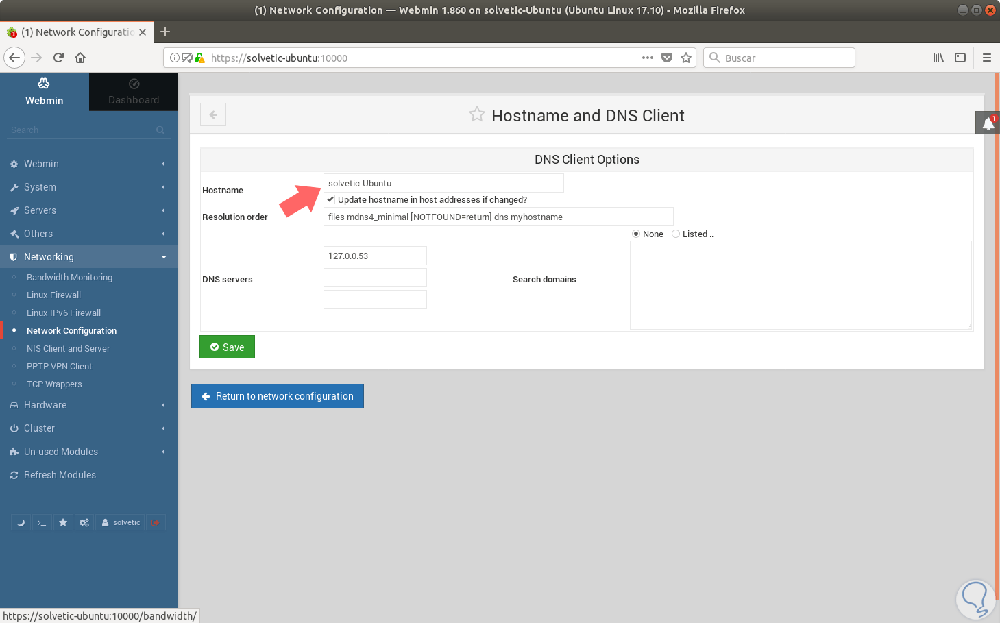 5. Cómo usar Webmin en Ubuntu 17 :Parámetros adicionales