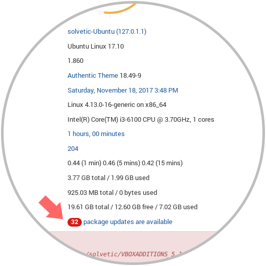Podemos ver que en este caso tenemos 32 paquetes para ser actualizados. Podemos dar clic sobre dicha línea y accederemos a las respectivas actualizaciones disponibles: