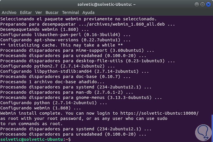 Solvetic explicará el paso a paso de cómo instalar y usar Webmin en Ubuntu 17.10.
