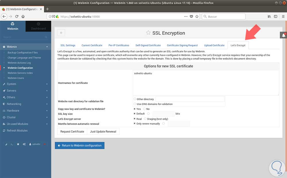 2. Agregar un certificado válido con Let's Encrypt en Webmin Linux