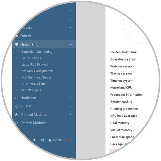 - Webmin incluye más de 116 módulos a nivel de Sistema, Servidores, Networking, Hardware y más.