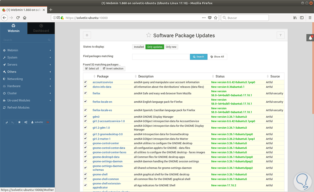 4. Cómo usar Webmin en Ubuntu 17: Actualizacion de paquetes Ubuntu