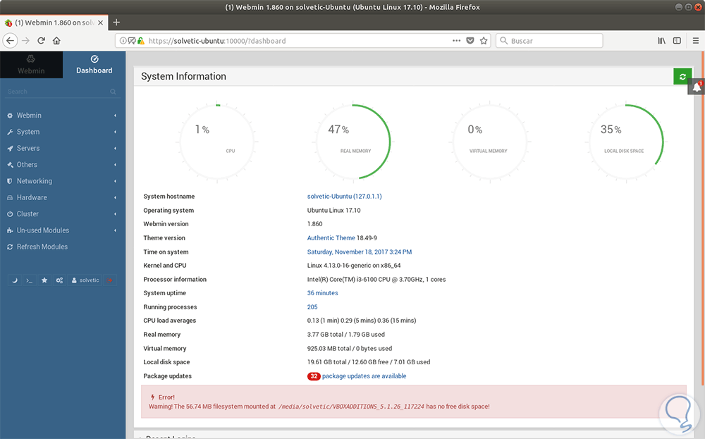 Así vemos como Webmin es una potente utilidad para un control general de Ubuntu 17.10.