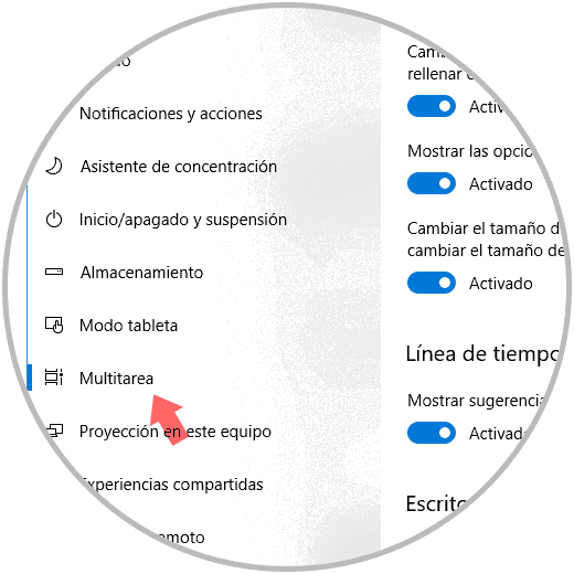 Ahora debes pulsar en el apartado “Sistema” y en la nueva ventana la sección “Multitarea”: