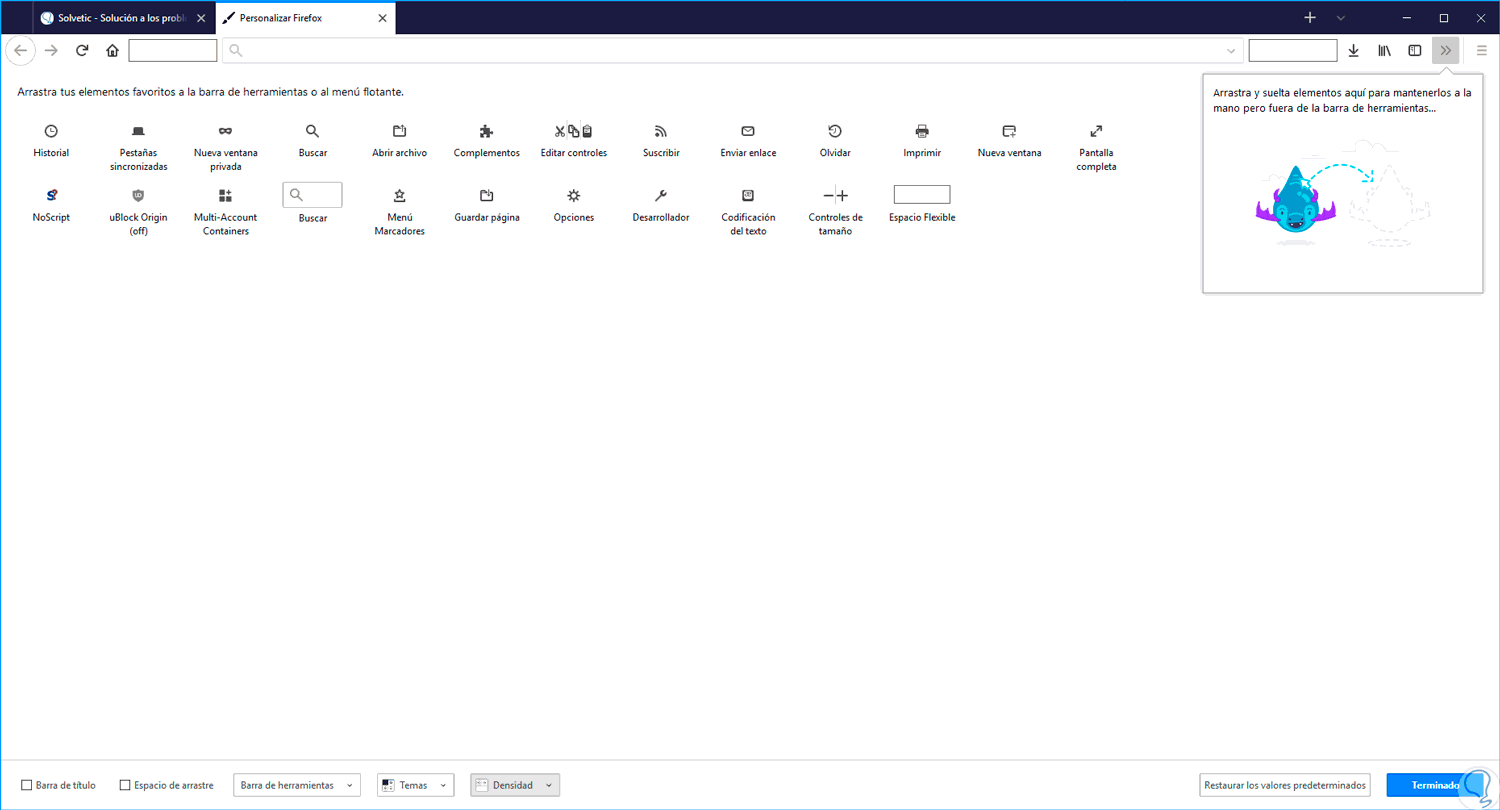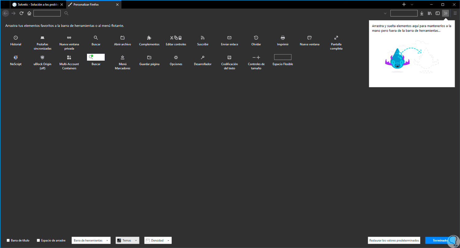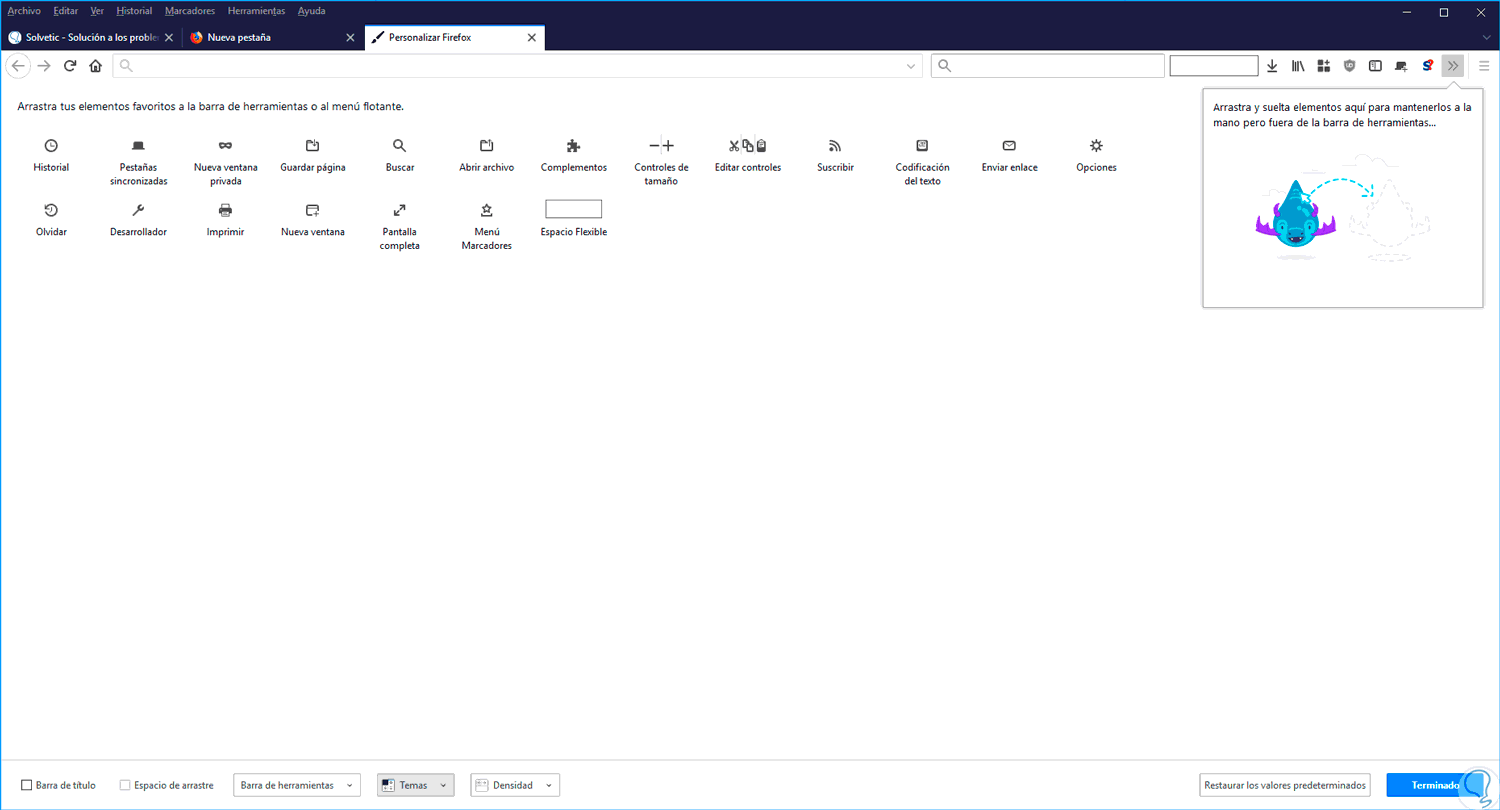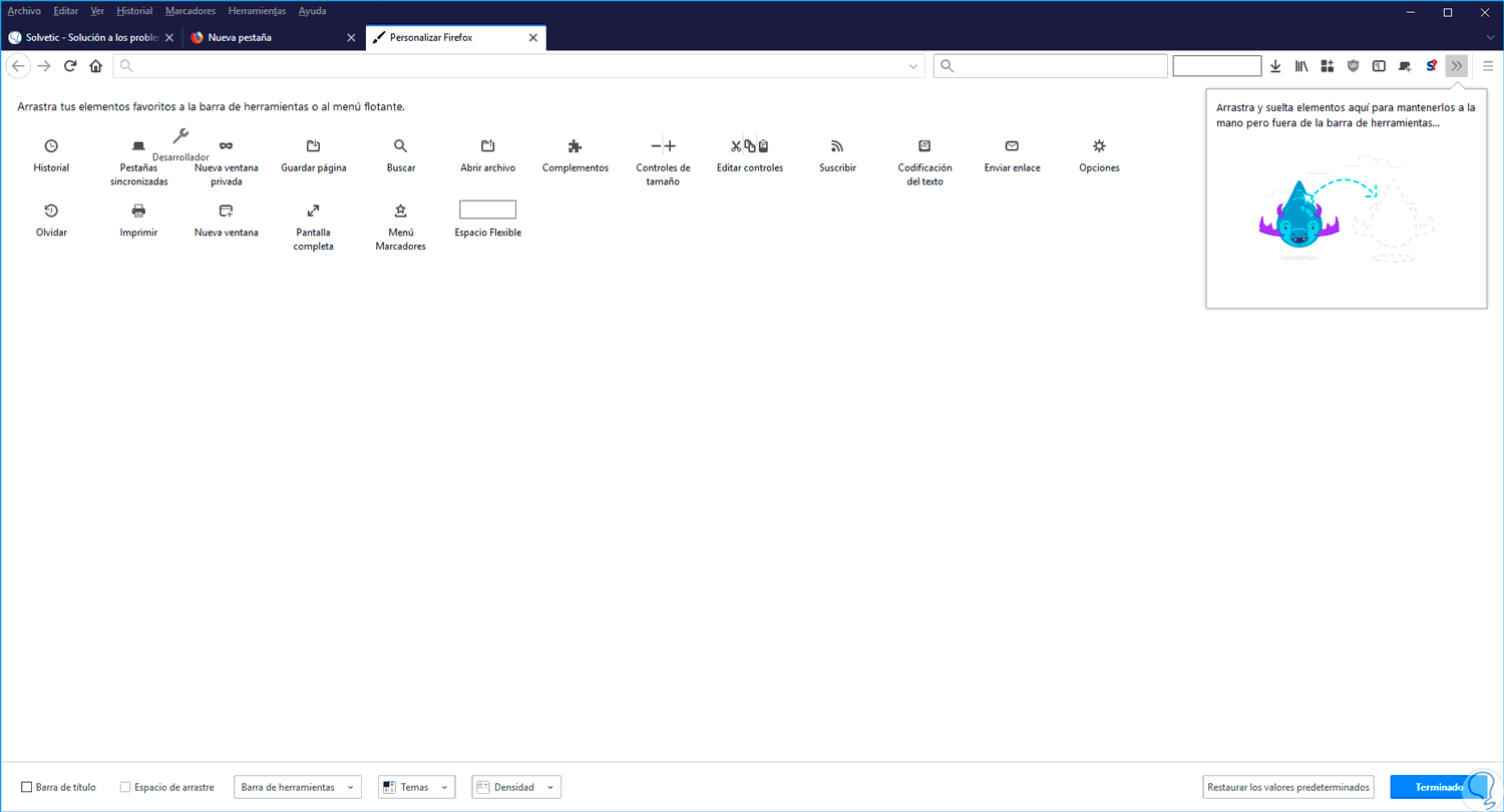 2. Agregar nuevos botones en la barra de herramientas de Firefox Quantum